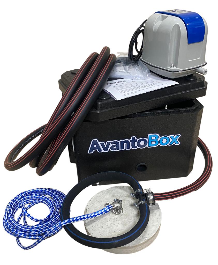 AvantoBox-60L avantopumppuja käytetään myös pontoonilaiturin alla tai paikoissa missä halutaan välttää jäävaurioita.